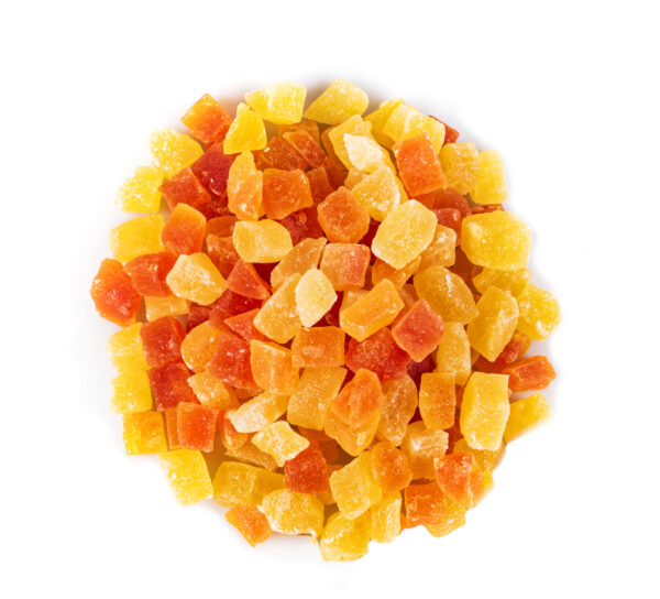 Papaya pieces, pineapple pieces, sugar, citric acid, sulphur dioxide